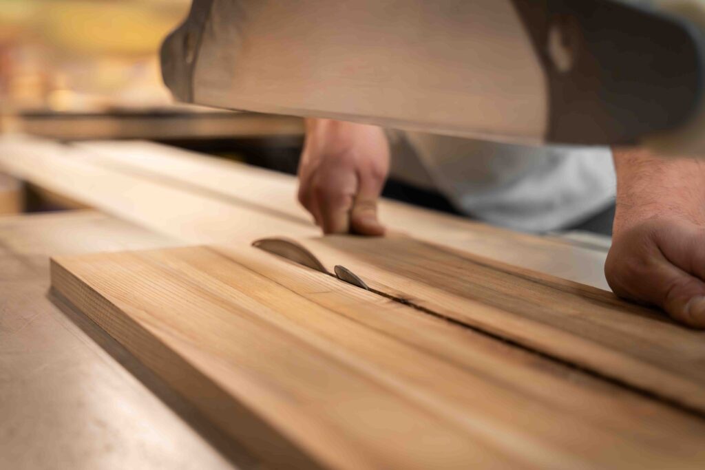 - La fabrication artisanale : Nous travaillons le bois massif dans notre atelier avec une précision millimétrée. Nous utilisons des techniques d’assemblage traditionnelles qui garantissent la stabilité de l’ouvrage.